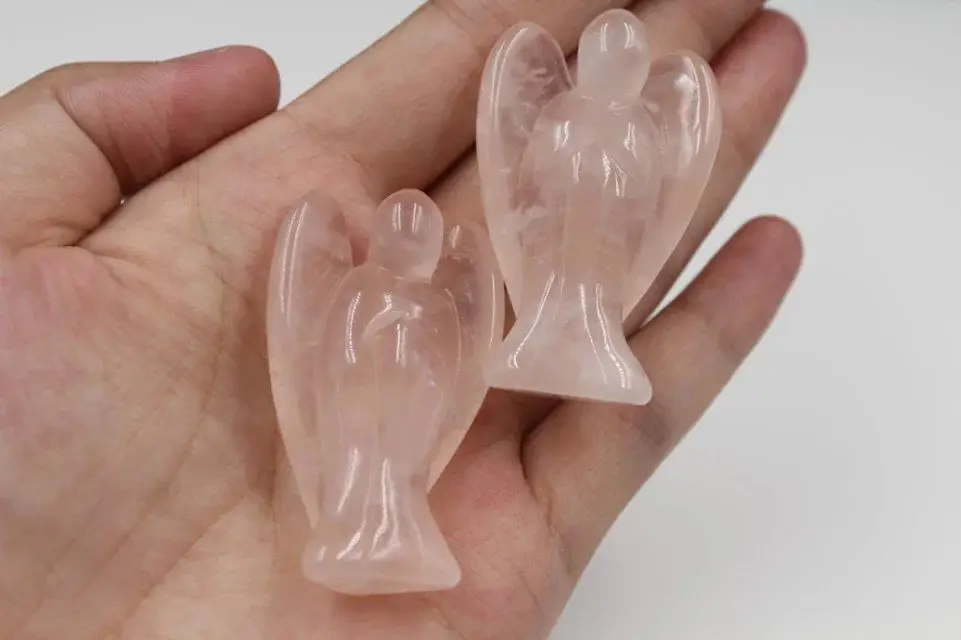 HIGH QUALITY free shipping Rose Quartz Carved Mini Angel Statue Crystal Healing Stones A Pair 2inch